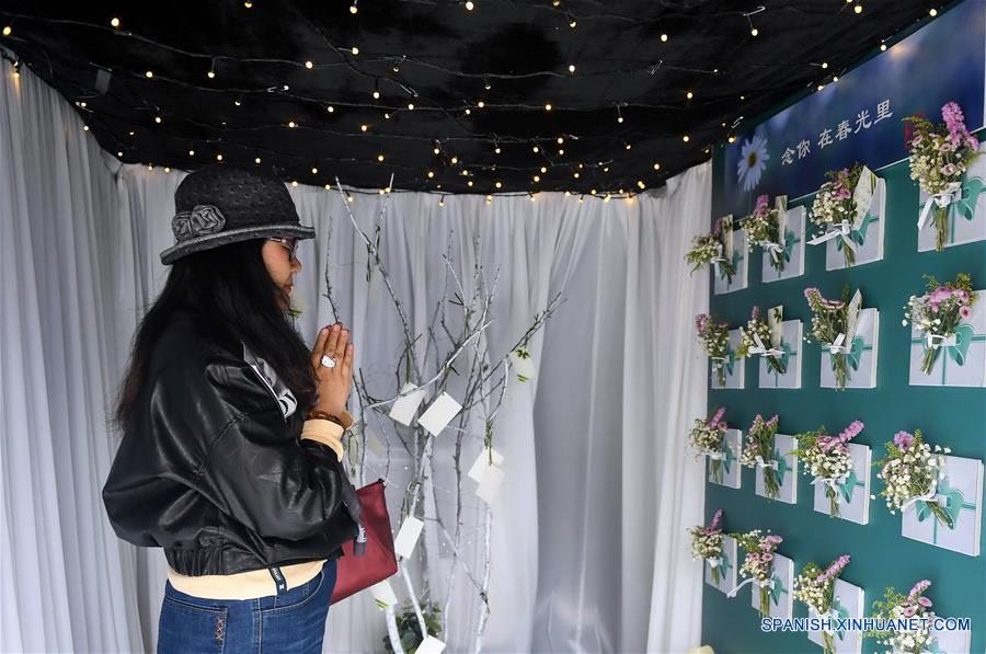 CHANGCHUN, abril 4, 2018 (Xinhua) -- Una mujer ora por los fallecidos dentro de un vehículo en el que las personas pueden escribir mensajes para ellos, en Changchun, en la provincia de Jilin, en el noreste de China, el 4 de abril de 2018. Los chinos recordarán y rendirán tributo a los fallecidos por el Festival Qingming, que se conmemora el 5 de abril. (Xinhua/Xu Chang)