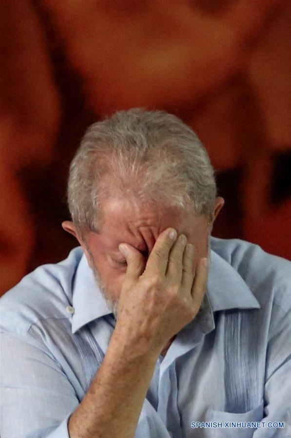 Imagen de archivo del 25 de enero de 2018 del expresidente brasile?o, Luiz Inácio Lula da Silva, participando durante una reunión de la dirección del Partido de los Trabajadores (PT) cuando el partido lanza oficialmente la candidatura de Lula para las elecciones presidenciales, en Sao Paulo, Brasil. La Corte Suprema de Brasil negó el habeas corpus para evitar prisión del expresidente Luiz Inácio Lula da Silva.(Xinhua/Rahel Patrasso)