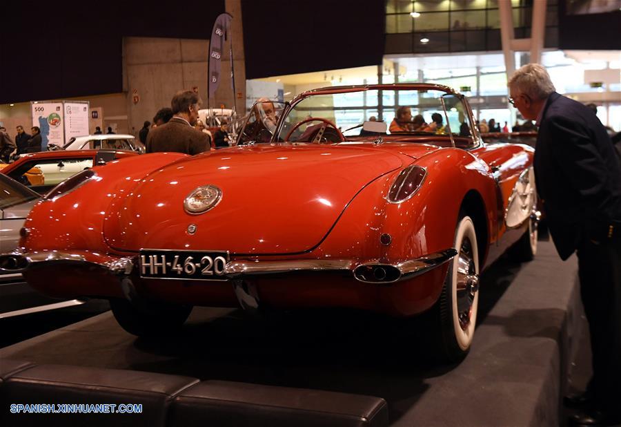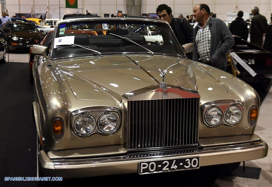 LISBOA, abril 7, 2018 (Xinhua) -- Imagen del 6 de abril de 2018 de personas observando un automóvil clásico durante el XIII Salón del Automóvil Clásico de Lisboa, en Lisboa, Portugal. El evento de tres días de duración abrió el viernes en Lisboa. (Xinhua/Zhang Liyun)