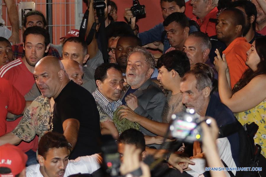 SAO BERNARDO DO CAMPO, Brasil, 7 abr (Xinhua) -- El ex presidente de Brasil, Luiz Inácio Lula da Silva, se entregó hoy a la policía para cumplir la pena de 12 a?os y un mes de prisión que recibió por corrupción pasiva y lavado de dinero en el marco del caso Petrobras.