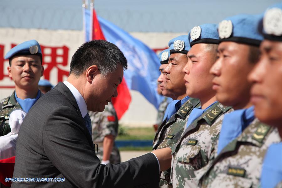 BEIRUT, 6 abr (Xinhua) -- Los 410 miembros del 16° contingente de elementos de mantenimiento de paz de China en Líbano recibieron hoy la Medalla de Honor de Paz de la ONU, un mes antes de transferir la autoridad al contingente número 17.