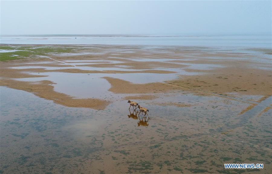 Ciervos milu galopan en los humedales alrededor del lago Poyang, provincia de Jiangxi, 3 de abril del 2018. [Foto: Xinhua]