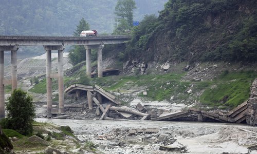 El nuevo puente erigido sobre las ruinas de un puente destruido durante el terremoto de Wenchuan. (Foto: Hui Yang/ GT)