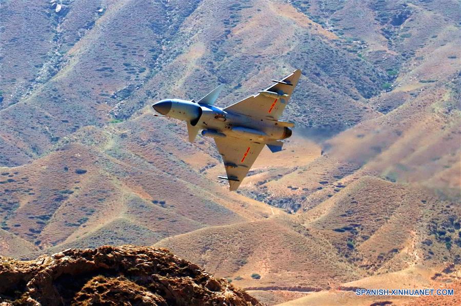 BEIJING, abril 16, 2018 (Xinhua) -- Imagen de archivo sin localización de un jet de pelea J-10C durante un entrenamiento. El nuevo caza J-10C, con múltiples funciones, inició el lunes sus actividades de combate, anunció la fuerza aérea del Ejército Popular de Liberación (EPL) de China. Equipado con un sistema de aviónica avanzado y varias armas aerotransportadas, el caza, desarrollado en el país, cuenta con capacidades de ataque aéreo de alcance medio y próximo y puede acertar en el objetivo con precisión tanto en tierra como en mar, informó la fuerza aérea en un comunicado. Es un caza supersónico de tercera generación de China e hizo su debut en el 90o aniversario del EPL en julio de 2017 en la base de entrenamiento militar de Zhurihe, en la región autónoma de Mongolia Interior. (Xinhua/Xi Bobo)