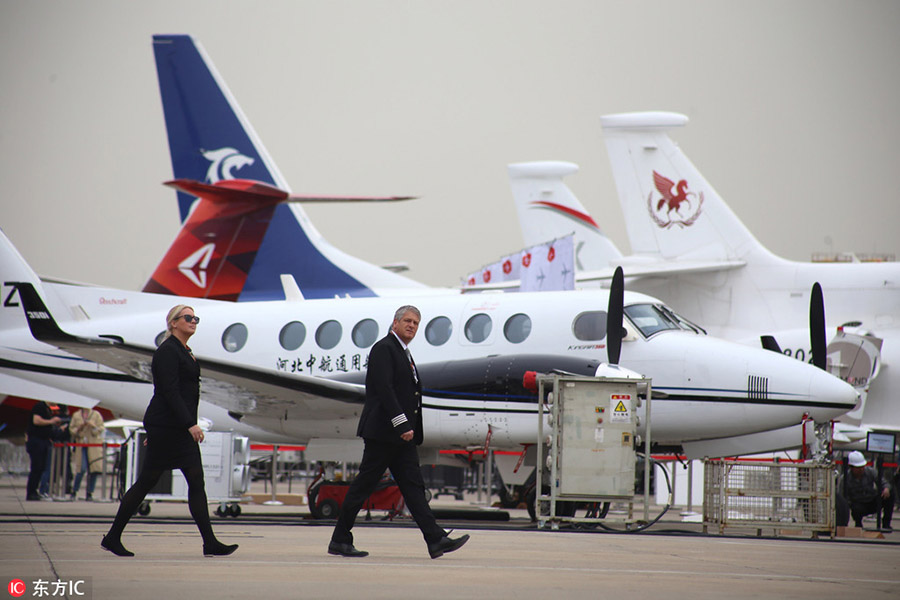 Un avión de negocios se exhibe en la Conferencia y Exposición Anual de Aviación de Negocios de Asia, Shanghai, 16 de abril del 2018. [Foto: IC]