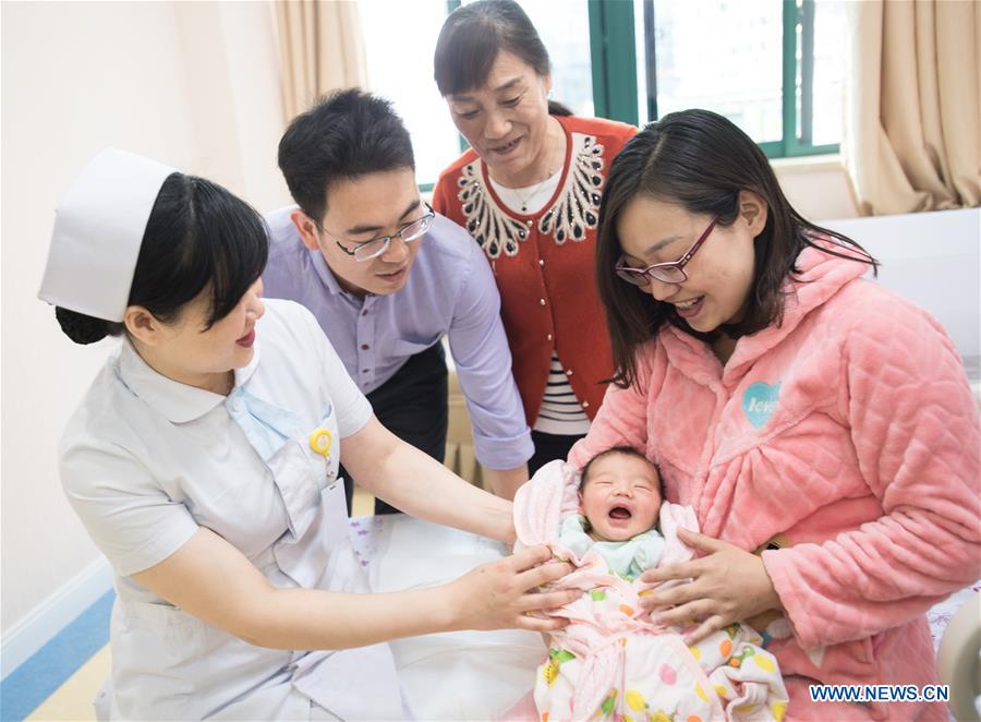 Una trabajadora de la salud atiende a una paciente que recién ha dado a luz en el Hospital del Ni?o y de la Madre de Wuhan, capital de la provincia de Hubei, 18 de abril del 2018. Un total de 17 nuevos pabellones abrieron recientemente para ofrecer servicios médicos integrales de preparto, parto, postparto y recuperación. Aquí las madres, acompa?adas por sus familiares, pueden recibir un tratamiento médico de calidad en cubículos individuales. (Foto: Xinhua/ Xiong Qi)