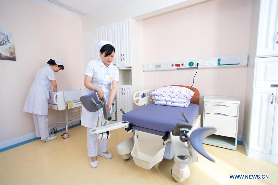 Trabajadoras de la salud acondicionan nuevos pabellones en el Hospital del Ni?o y de la Madre de Wuhan, capital de la provincia de Hubei, 18 de abril del 2018. Un total de 17 nuevos pabellones abrieron recientemente para ofrecer servicios médicos integrales de preparto, parto, postparto y recuperación. Aquí las madres, acompa?adas por sus familiares, pueden recibir un tratamiento médico de calidad en cubículos individuales. (Foto: Xinhua/ Xiong Qi)