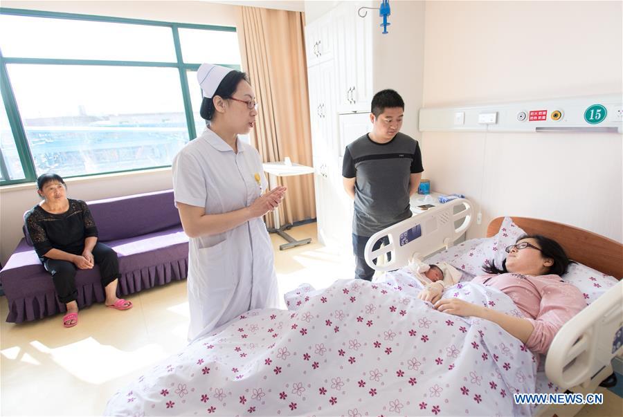 Wuhan, Hubei, 19/04/2018 (El Pueblo en Línea) - Una trabajadora de la salud dialoga sobre temas relacionados con la maternidad con una paciente que recién ha dado a luz en el Hospital del Ni?o y de la Madre de Wuhan, capital de la provincia de Hubei, 18 de abril del 2018. Un total de 17 nuevos pabellones abrieron recientemente para ofrecer servicios médicos integrales de preparto, parto, postparto y recuperación. Aquí las madres, acompa?adas por sus familiares, pueden recibir un tratamiento médico de calidad en cubículos individuales. (Foto: Xinhua/ Xiong Qi)