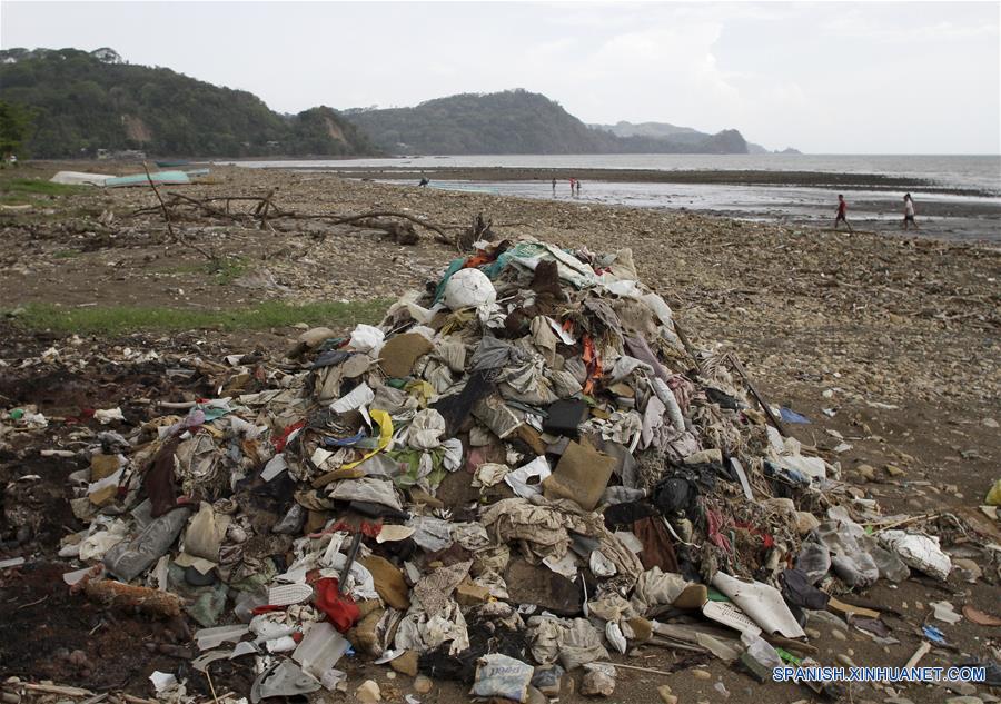 Ni?os juegan en una playa llena de basura acumulada en Playa Azul, en Tárcoles, en la provincia de Puntarenas, Costa Rica, el 21 de abril de 2018. De acuerdo con información de la prensa local, la Playa Azul está ubicada en la desembocadura del río Grande de Tárcoles, el cual es el río más contaminado de Centroamérica, por lo que la playa se ve afectada también por una gran cantidad de residuos de mayoría no reciclable y que se acumulan en la orilla costera. El Día Internacional de la Madre Tierra, establecido por la Asamblea General de la Organización de las Naciones Unidas (ONU) el 22 de diciembre de 2005, se celebra anualmente el 22 de abril con el objetivo de crear conciencia entre todas las personas sobre los problemas que afectan a la Tierra y a las diferentes formas de vida que en ésta se desarrollan. (Xinhua/Kent Gilbert)