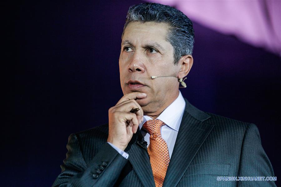 El candidato presidencial del partido Avanzada Progresista (AP), Movimiento al Socialismo (MAS) y el Comité de Organización Política Electoral Independiente (COPEI), Henri Falcón, participa durante la presentación de su programa de Gobierno, en Caracas, Venezuela, el 23 de abril de 2018. (Xinhua/Andrea Romero)