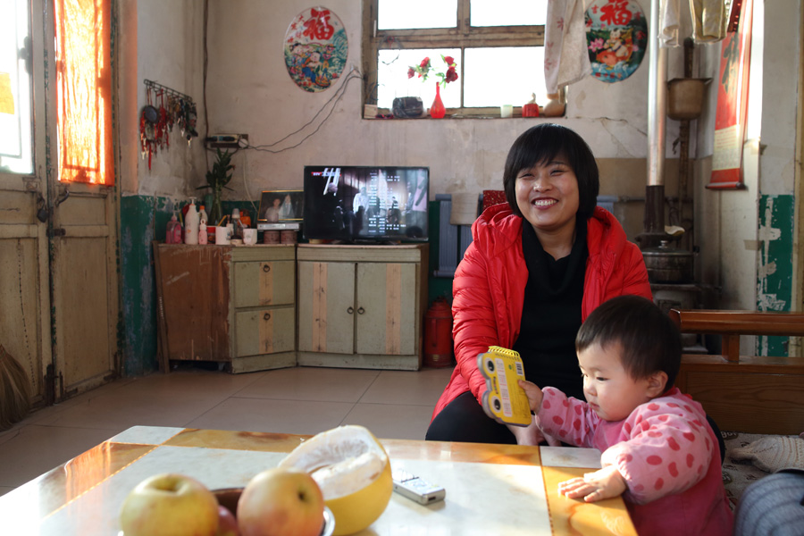 Du Yongzhu juega con su hija en su casa en Nanzhanglou. WANG JING / CHINA DAILY