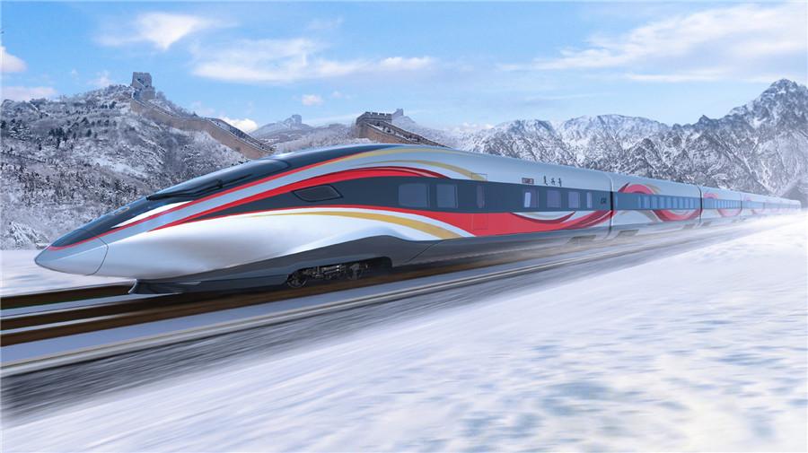 Dise?o de los trenes de alta velocidad Beijing-Zhangjiakou presentado en Beijing el 23 de abril de 2018. (Foto / Xinhua)