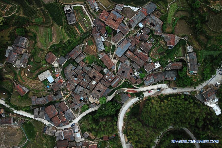 Imagen aérea del 23 de abril de 2018 de la aldea Pingtian, en la ciudad de Sidu, en el condado de Songyang, en la provincia de Zhejiang, en el este de China. Desde 2003, Zhengjiang ha venido implementando un proyecto para reformar el entorno de vida de sus poblados. Hasta finales del a?o pasado, un 97 por ciento de las aldeas de la provincia habían completado la revisión. (Xinhua/Huang Zongzhi)