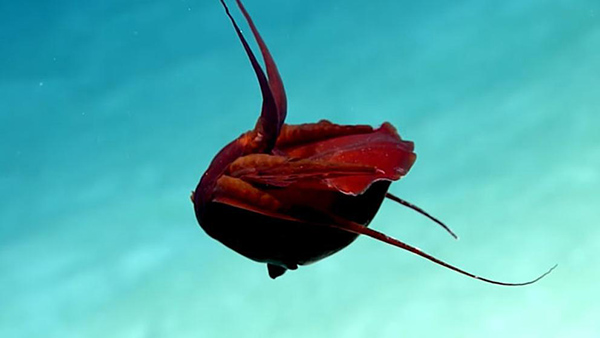 En concreto, Vecchione asegura que se mueve por la columna de agua como lo hace el Nautilus, un auténtico fósil viviente -predecesor de pulpos, calamares y sipias- que flota permanentemente gracias a una cámara de aire. Asimismo, este animal escapa de sus depredadores mediante la propulsión a chorro, empleando un sifón que tiene al lado de su cabeza.