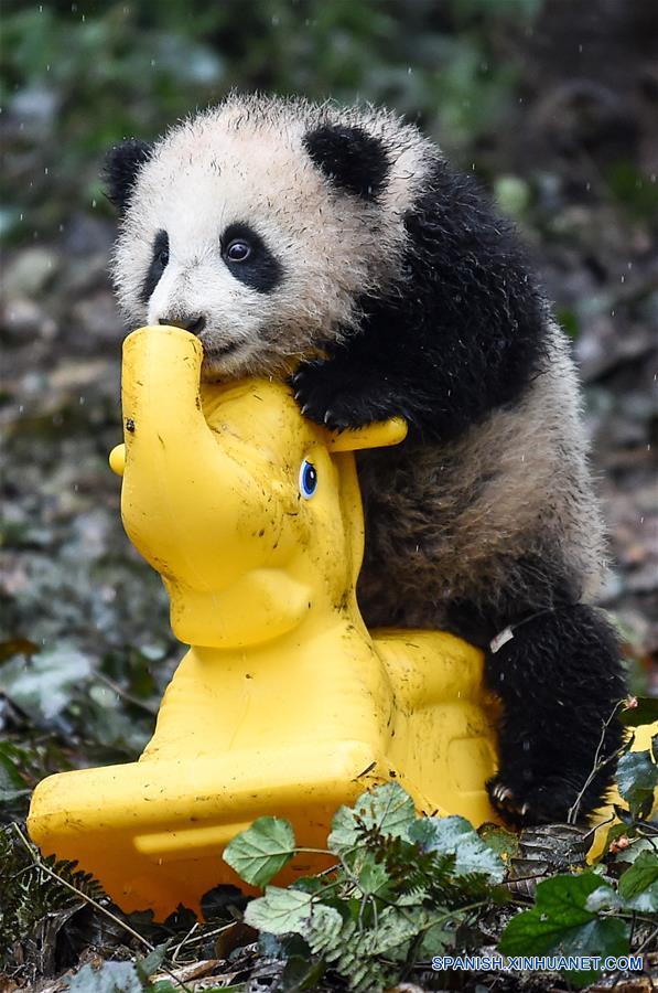 SICHUAN, abril 26, 2018 (Xinhua) -- Imagen del 11 de enero de 2017 de un panda gigante jugando en la base Bifengxia de Ya'an del Centro para la Conservación y la Investigación del Panda Gigante de China (CCIPGCh), en la provincia de Sichuan, en el suroeste de China. Un terremoto catastrófico da?ó el 12 de mayo de 2018 la Reserva del Panda de Wolong en Sichuan. Después de un esfuerzo de diez a?os, las tres bases de Wolong, Dujiangyan y Ya'an del CCIPGCh han sido restauradas y puesto en funcionamiento. (Xinhua/Xue Yubin)