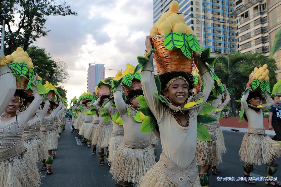Bailarinas actúan durante la anual Fiesta Aliwan, en Manila, Filipinas, el 28 de abril de 2018. La Fiesta Aliwan es el concurso anual del festival de baile de verano, que muestra el arte folclórico y étnico de todo el país. (Xinhua/Rouelle Umali)