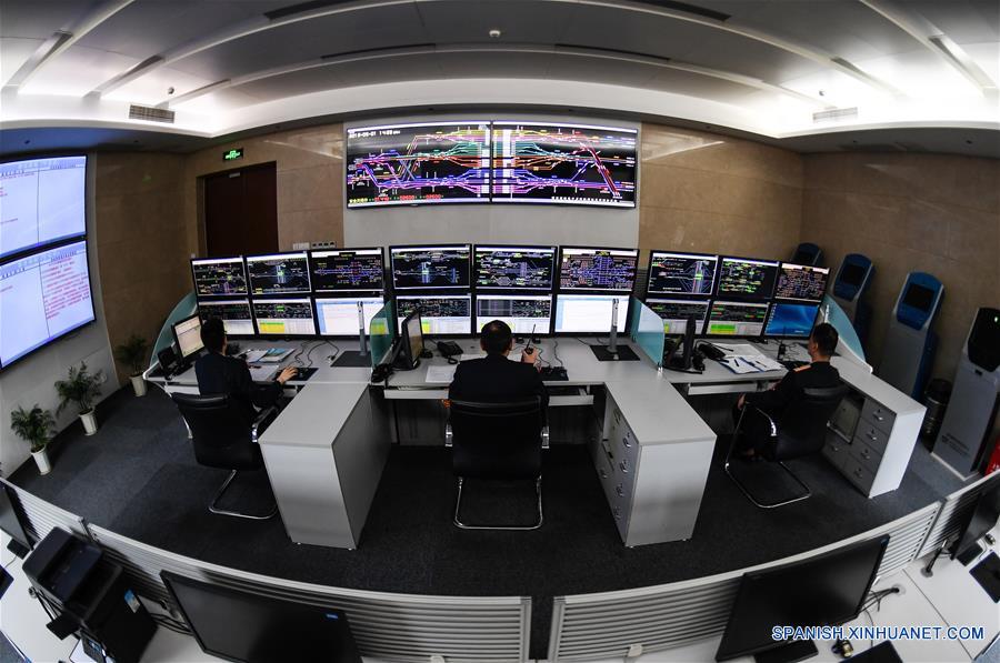JIANGSU, mayo 1, 2018 (Xinhua) -- Empleados dirigen las salidas y llegadas en la Estación del Ferrocarril de Nanjing Sur, en Nanjing, provincia de Jiangsu, en el este de China, el 1 de mayo de 2018. Muchos trabajadores permanecieron en sus puestos en el Día Internacional del Trabajo 2018 mientras el país goza de tres días de vacaciones. (Xinhua/Li Xiang)