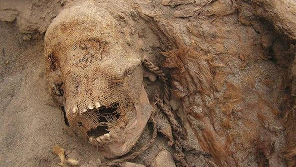 Resto óseo momificado encontrado en el sitio arqueológico Huanchaquito-Las Llamas (EFE/Cortesía National Geographic-www.nationalgeographicla.com)