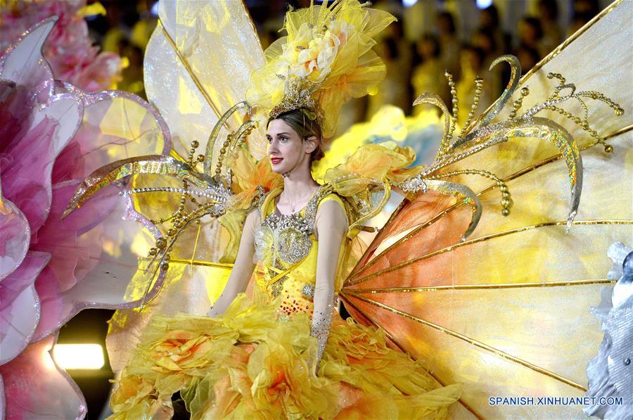Imagen del 1 de mayo de 2018 de una artista realizando una presentación durante en un espectáculo de luz llevado a cabo en Xi'an, capital de la provincia de Shaanxi, en el noroeste de China. Tecnología de iluminación, arte moderno y cultura tradicional fueron idealmente mezclados en el espectáculo de luz. (Xinhua/Liu Xiao)