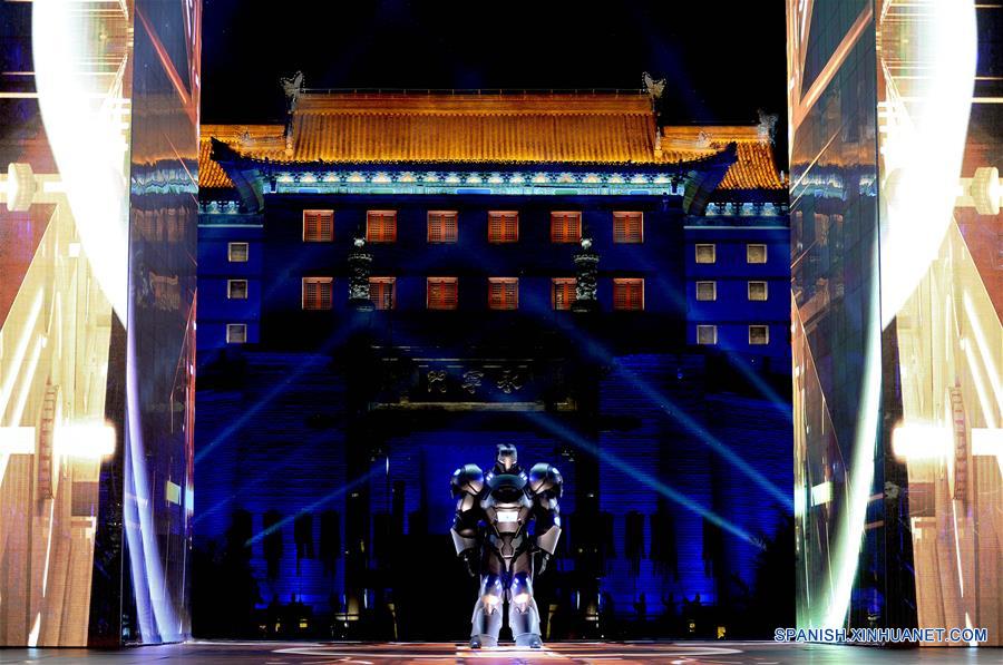 SHAANXI, mayo 2, 2018 (Xinhua) -- Imagen del 1 de mayo de 2018 de una vista de una escena de un espectáculo de luz llevado a cabo en Xi'an, capital de la provincia de Shaanxi, en el noroeste de China. Tecnología de iluminación, arte moderno y cultura tradicional fueron idealmente mezclados en el espectáculo de luz. (Xinhua/Liu Xiao)