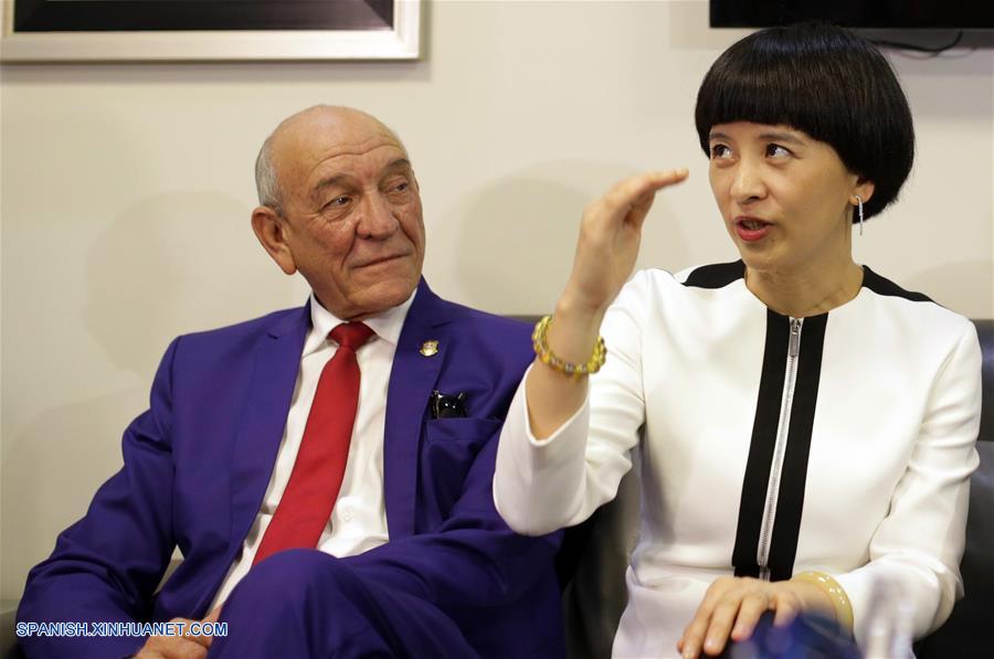 SANTO DOMINGO, mayo 2, 2018 (Xinhua) -- Imagen del 1 de mayo de 2018 de la representante de la Oficina de Desarrollo Comercial de China en República Dominicana, Fu Xinrong (d), participando durante una entrevista exclusiva con Xinhua, en Santo Domingo, República Dominicana. El establecimiento de relaciones diplomáticas entre China y la República Dominicana fortalecerá las relaciones bilaterales y promoverá la cooperación en un número de áreas, dijo Fu Xinrong, representante de la Oficina de Desarrollo Comercial de China en el país caribe?o.China y República Dominicana firmaron un comunicado conjunto el martes en Beijing sobre el establecimiento de sus relaciones diplomáticas. El hecho representa una tendencia irresistible, además, la comunidad internacional ha alcanzado el consenso universal de adherirse al principio de una sola China, declaró el martes Fu. (Xinhua/Roberto Guzmán)