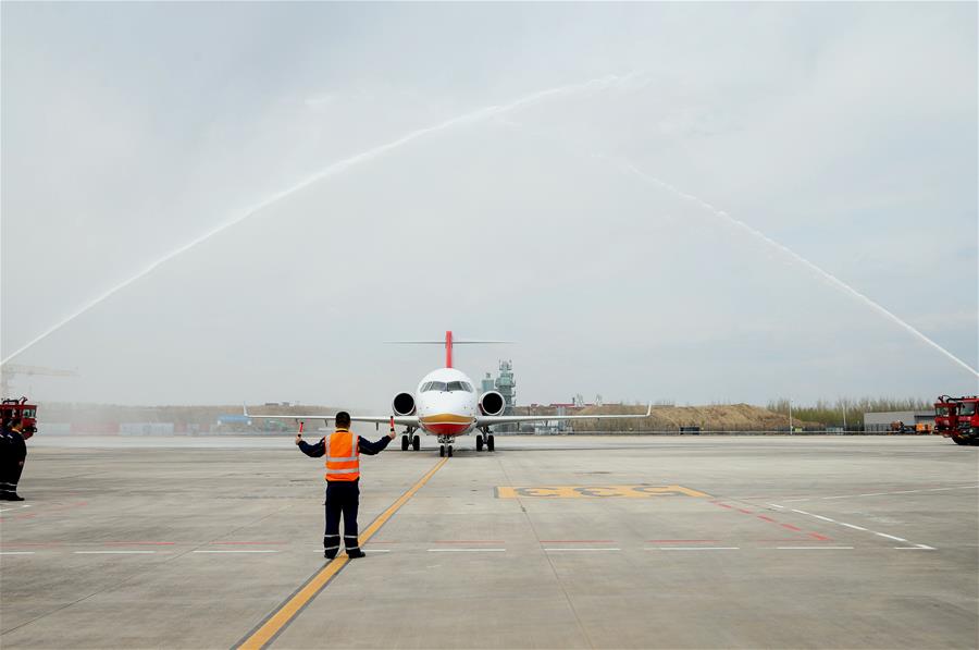 HEILONGJJIANG, mayo 2, 2018 (Xinhua) -- Un avión ARJ21 aterriza en el Aeropuerto de Aihun, en la ciudad de Heihe, en la provincia de Heilongjiang, en el noreste de China, el 2 de mayo de 2018. El avión de pasajeros regional ARJ21, desarrollado por China, empezó el miércoles a volar en una serie de nuevas rutas en la provincia de Heilongjiang, anunció la Corporación de Aviones Comerciales de China (COMAC, por sus siglas en inglés). La inauguración de las nuevas rutas aéreas en las que opera el ARJ21 representa las operaciones de vuelo comercial del modelo en el extremo septentrional y la región extremadamente fría del país, según las fuentes de la COMAC, con sede en Shanghai. (Xinhua/Ding Ting)