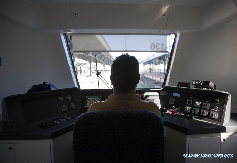 Imagen del 3 de mayo de 2018 del conductor ferroviario Alejandro Brice?o conduciendo el tren eléctrico fabricado por la empresa china CRRC Corporation Limited, en la terminal Constitución en la ciudad de Buenos Aires, capital de Argentina. Desde la mirada de Fernando Pintos, uno de los instructores técnicos de conducción con más de 36 a?os de experiencia en el Ferrocarril Metropolitano de Buenos Aires en Argentina, los trenes de fabricación china han dotado de nuevas virtudes a la red ferroviaria de su país. Cabinas de conducción más cómodas y amplias, aire acondicionado, velocidad superior, mayor tecnología y capacidad de resolver eventuales inconvenientes, son algunas de las nuevas bondades que, según Pintos, ofrecen los coches eléctricos fabricados por la empresa china CRRC Corporation Limited. Desde 2014, tres de las siete líneas suburbanas del ferrocarril bonaerense han incorporado en su flota a las unidades chinas, como parte de los convenios firmados por el gobierno de Argentina y la estatal CRRC, la mayor fabricante de equipo de transporte ferroviario de China. Los 200 nuevos vagones que llegarán a Argentina en los próximos meses constan de una inversión de 278 millones de dólares, y tras su arribo se terminarán de sustituir los viejos coches de tecnología japonesa, según informó el ministerio argentino de Transporte, Guillermo Dietrich. Estas nuevas unidades permitirán ampliar la longitud de cada tren, además de posibilitar el desplazamiento del conductor y de los pasajeros por cada uno de los salones sin tener que desembarcar en las estaciones. Para Fernando Pintos es un hecho a celebrar que la Línea Roca cuente con una flota totalmente renovada, y destaca la buena adaptación que han tenido los conductores a las nuevas unidades eléctricas. "Bienvenido todo lo que sea compartir el conocimiento y también lograr que la tecnología que hoy está manejando China, que hoy no se tiene en Argentina se pueda aprovechar (...) y lograr en conjunto estos proyectos superadores", reflexionó. (Xinhua/Martín Zabala)