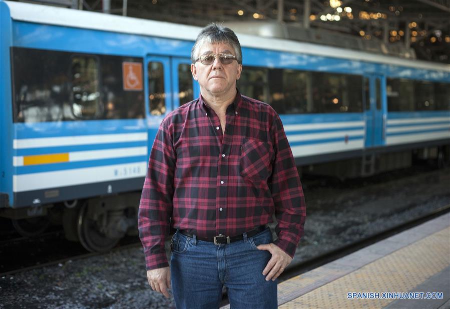 Imagen del 3 de mayo de 2018 de Fernando Pintos, uno de los instructores técnicos de conducción con más de 36 a?os de experiencia en el Ferrocarril Metropolitano, posando frente a uno de los trenes eléctricos fabricados por la empresa china CRRC Corporation Limited, en la terminal Constitución en la ciudad de Buenos Aires, capital de Argentina. Desde la mirada de Fernando Pintos, uno de los instructores técnicos de conducción con más de 36 a?os de experiencia en el Ferrocarril Metropolitano de Buenos Aires en Argentina, los trenes de fabricación china han dotado de nuevas virtudes a la red ferroviaria de su país. Cabinas de conducción más cómodas y amplias, aire acondicionado, velocidad superior, mayor tecnología y capacidad de resolver eventuales inconvenientes, son algunas de las nuevas bondades que, según Pintos, ofrecen los coches eléctricos fabricados por la empresa china CRRC Corporation Limited. Desde 2014, tres de las siete líneas suburbanas del ferrocarril bonaerense han incorporado en su flota a las unidades chinas, como parte de los convenios firmados por el gobierno de Argentina y la estatal CRRC, la mayor fabricante de equipo de transporte ferroviario de China. Los 200 nuevos vagones que llegarán a Argentina en los próximos meses constan de una inversión de 278 millones de dólares, y tras su arribo se terminarán de sustituir los viejos coches de tecnología japonesa, según informó el ministerio argentino de Transporte, Guillermo Dietrich. Estas nuevas unidades permitirán ampliar la longitud de cada tren, además de posibilitar el desplazamiento del conductor y de los pasajeros por cada uno de los salones sin tener que desembarcar en las estaciones. Para Fernando Pintos es un hecho a celebrar que la Línea Roca cuente con una flota totalmente renovada, y destaca la buena adaptación que han tenido los conductores a las nuevas unidades eléctricas. "Bienvenido todo lo que sea compartir el conocimiento y también lograr que la tecnología que hoy está manejando China, que hoy no se tiene en Argentina se pueda aprovechar (...) y lograr en conjunto estos proyectos superadores", reflexionó. (Xinhua/Martín Zabala)