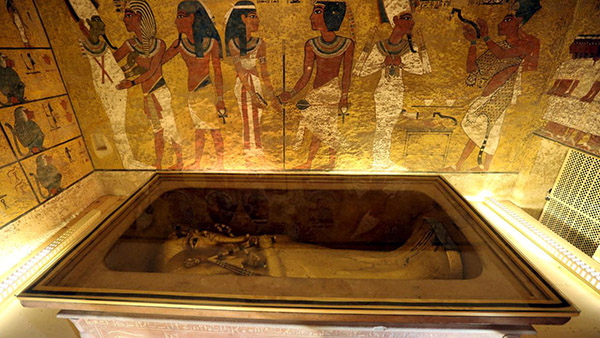 El sarcófago dorado de Tutankamón en su cámara funeraria en el Valle de los Reyes, Luxor - REUTERS