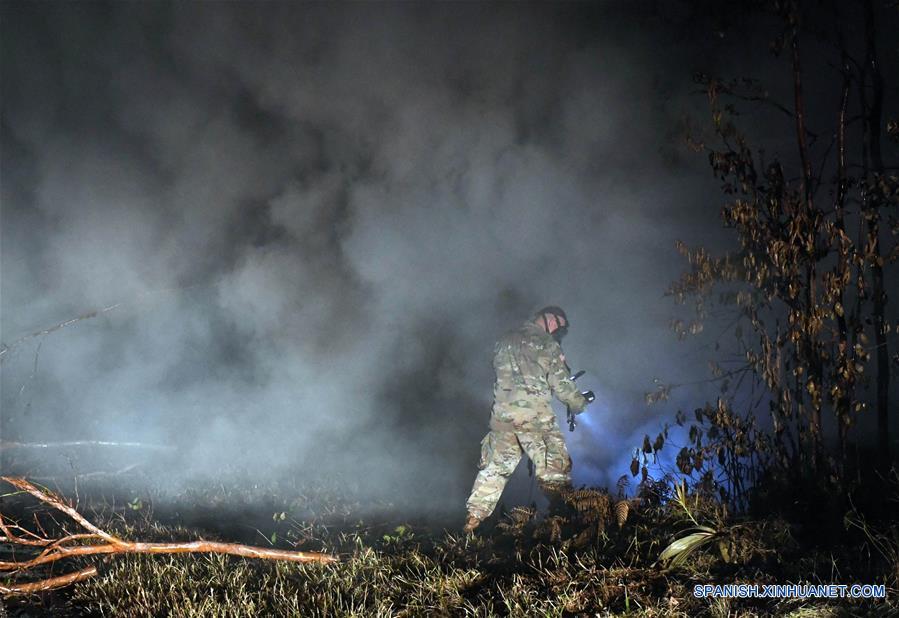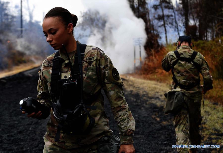 HAWAII, mayo 10, 2018 (Xinhua) -- Imagen del 9 de mayo de 2018 de soldados inspeccionando la "zona de lava" en el estado de Leilani, Hawaii, Estados Unidos. De acuerdo con informes del gobierno del estado de Hawaii, las erupciones del volcán Kilauea obligaron a la evacuación de miles de personas. (Xinhua/Tao Xiyi)