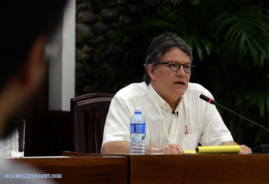 LA HABANA, mayo 10, 2018 (Xinhua) -- El ex vicepresidente de Colombia, Gustavo Bell, participa en el quinto ciclo de la Mesa de Diálogos de paz entre el gobierno de Colombia y la guerrilla del Ejército de Liberación Nacional (ELN), en La Habana, Cuba, el 10 de mayo de 2018. (Xinhua/Joaquín Hernández)