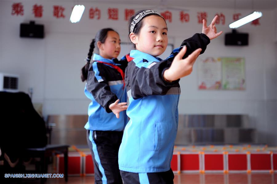 SHAANXI, abril 26, 2018 (Xinhua) -- Imagen del 25 de abril de 2018 de estudiantes asistiendo a una clase de danza en la escuela primaria Zhongxin del municipio de Wenquan, en el condado de Mianxian de la ciudad de Hanzhong, provincia de Shaanxi, en el noroeste de China. El condado de Mianxian fue afectado por un terremoto devastador que se centró en el condado de Wenchuan en la provincia de Sichuan, en el suroeste de China, el 12 de mayo de 2008. La escuela primaria Zhongxin del municipio de Wenquan fue reconstruida después del terremoto. Las instalaciones de esta escuela han sido mejoradas. Un salón de clase musical, una sala de ensa?anza de caligrafía y una biblioteca han sido construidas. Actualmente la escuela cuenta con 470 estudiantes. (Xinhua/Zhang Wenbo)