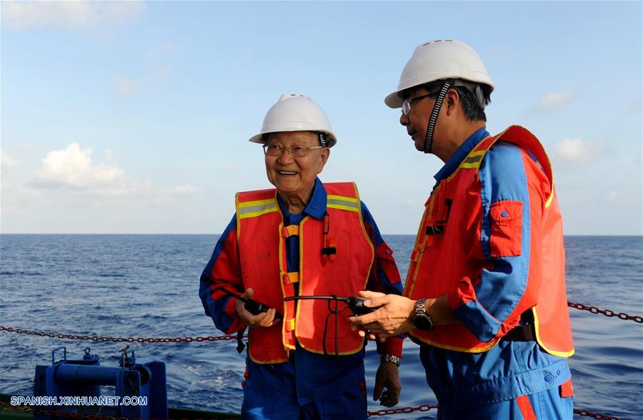 El reconocido geólogo Wang Pinxian, de 82 a?os, abordó el sumergible Shenhai Yongshi, o "Guerrero del mar profundo", en la ma?ana del domingo. El vehículo alcanzó una profundidad de 1.410 metros y Wang llevó a cabo más de ocho horas de investigaciones submarinas.