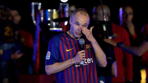 Iniesta, llorando en su adiós (Lluis Gene / AFP)