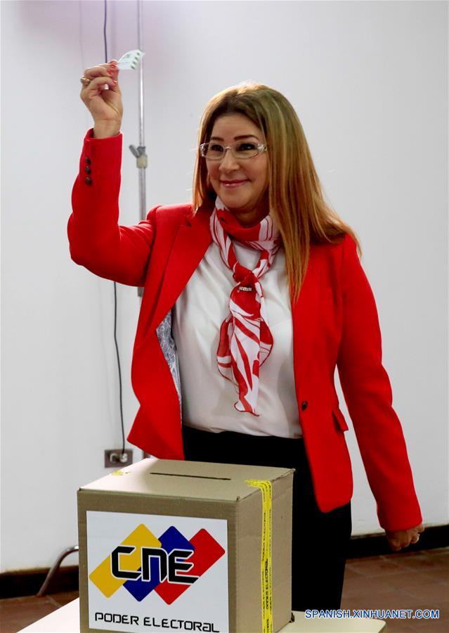 CARACAS, mayo 20, 2018 (Xinhua) -- Cilia Flores, esposa del presidente venezolano y candidato a la reelección por el partido Frente Amplio de la Patria, Nicolás Maduro, muestra su voto en una urna de un centro electoral en el colegio Miguel Antonio Caro, en Catia, Caracas, Venezuela, el 20 de mayo de 2018. El presidente venezolano y candidato a la relección, Nicolás Maduro, ejerció su derecho al voto a primera hora en las elecciones presidenciales y de consejos legislativos que se llevan a cabo el domingo en el país suramericano. (Xinhua/Presidencia de Venezuela/AVN)