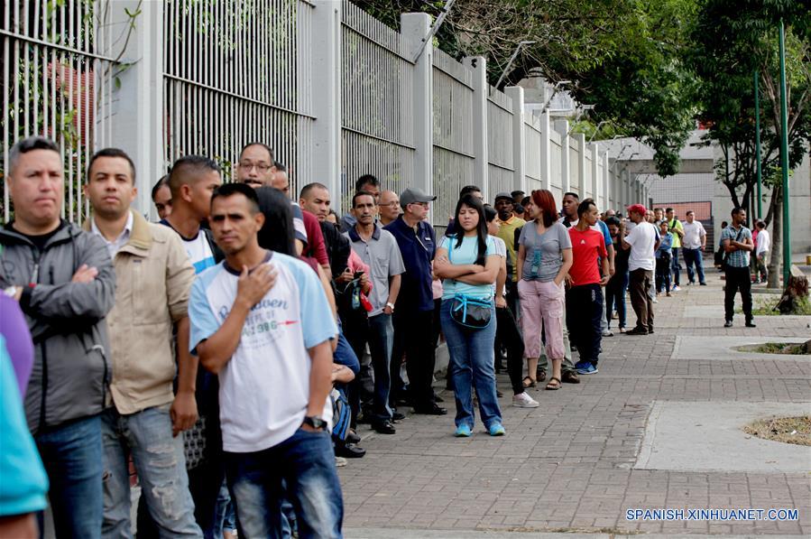 CARACAS, mayo 20, 2018 (Xinhua) -- Personas esperan previo a emitir su voto en un centro de votación en Caracas, Venezuela, el 20 de mayo de 2018. Los centros de votación abrieron sus puertas la ma?ana del domingo en Venezuela para la elección simultánea del presidente de la república y 251 representantes de los consejos legislativos. La presidenta del Consejo Nacional Electoral (CNE), Tibisay Lucena, informó que durante la primera hora de apertura de los centros de votación, hay un 80 por ciento de las mesas electorales constituidas. Venezuela ha dispuesto 34,143 mesas electorales en 14,638 centros de votación para recibir a los 20 millones 526 mil 978 electores habilitados para votar. (Xinhua/Boris Vergara)