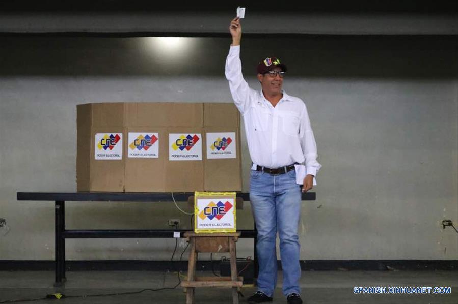 LARA, mayo 20, 2018 (Xinhua) -- Imagen cedida por Prensa Henri Falcón, del candidato presidencial venezolano por el partido Avanzada Progresista, Henri Falcón, mostrando su voto en un centro electoral, en el Gimnasio Los Horcones, en Barquisimeto, capital del estado Lara, Venezuela, el 20 de mayo de 2018. El candidato opositor, Henri Falcón, llamó el domingo a los venezolanos a votar, y los invitó a participar en un proceso limpio y transparente. Los centros de votación abrieron sus puertas la ma?ana del domingo en Venezuela para la elección simultánea del presidente de la república y 251 representantes de los consejos legislativos. El candidato presidencial pidió a las autoridades del Consejo Nacional Electoral (CNE) garantizar un proceso transparente y democrático ante supuestas "circunstancias irregulares". (Xinhua/Prensa Henri Falcón)