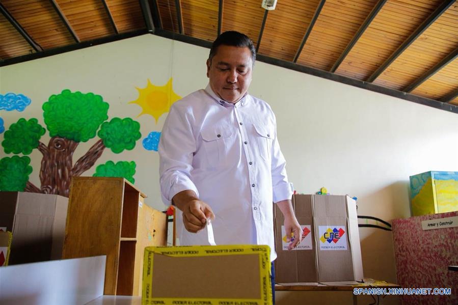 CARABOBO, mayo 20, 2018 (Xinhua) -- Imagen cedida por Prensa Esperanza por el Cambio, del candidato presidencial por Esperanza por el Cambio, Javier Bertucci, depositando su voto en una urna en un centro electoral, en el Centro de Educación Queipa del sector Pueblo Nuevo de San Diego, en Carabobo, Venezuela, el 20 de mayo de 2018. Los centros de votación abrieron sus puertas la ma?ana del domingo en Venezuela para la elección simultánea del presidente de la república y 251 representantes de los consejos legislativos. La presidenta del Consejo Nacional Electoral (CNE), Tibisay Lucena, informó que durante la primera hora de apertura de los centros de votación, hay un 80 por ciento de las mesas electorales constituidas. Venezuela ha dispuesto 34,143 mesas electorales en 14,638 centros de votación para recibir a los 20 millones 526 mil 978 electores habilitados para votar. (Xinhua/Prensa Esperanza por el Cambio)