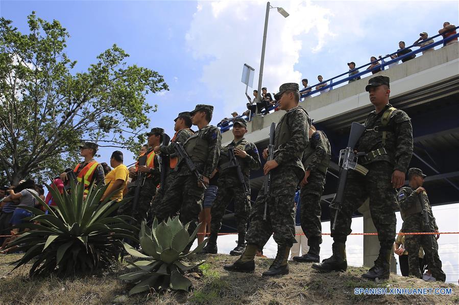 Militares acordonan el área donde un avión se accidentó en Tegucigalpa, capital de Honduras, el 22 de mayo de 2018. El portavoz del Hospital Escuela de Tegucigalpa, Miguel Osorio, informó el martes que las seis personas que se accidentaron en el aeropuerto Toncontín de Tegucigalpa, se encuentran fuera de peligro. Las seis personas se transportaban en un avión privado procedente de Estados Unidos, que se salió de la pista del aeropuerto Toncontín y cayó sobre una concurrida carretera. La aeronave con matrícula estadounidense N813WM llegó a Honduras desde Austin, Texas, Estados Unidos. (Xinhua/Rafael Ochoa)