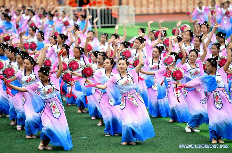 Estudiantes realizan una interpretación en el 2 Festival de Arte y Cultura llevado a cabo en la Escuela de Profesores de Jardín de Ni?os de Bozhou, en Bozhou, provincia de Anhui, en el este de China, el 22 de mayo de 2018. (Xinhua/Liu Qinli)