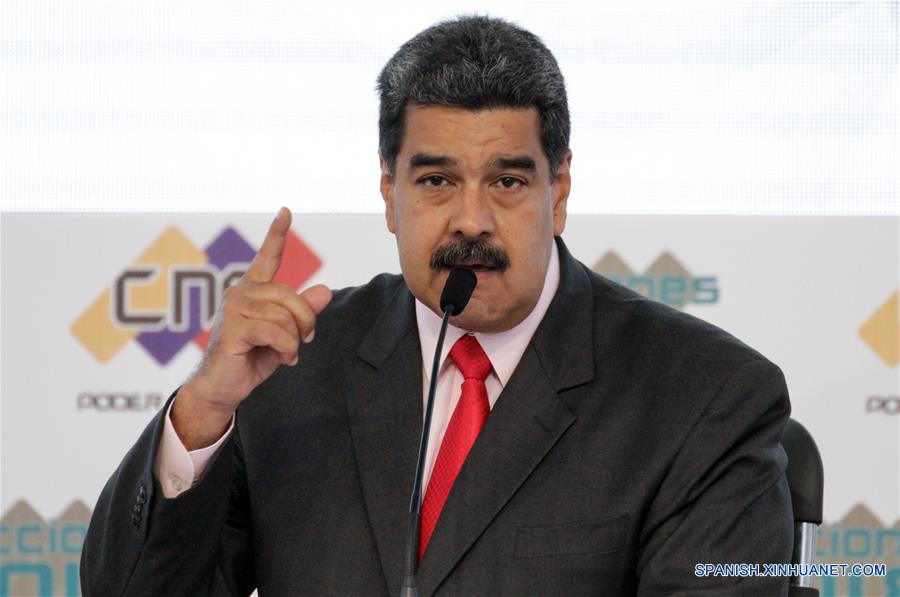 El presidente de Venezuela, Nicolás Maduro, pronuncia un discurso durante el acto en el que es proclamado como presidente para el periodo 2019-2025 en la sede del Consejo Nacional Electoral (CNE), en Caracas, Venezuela, el 22 de mayo de 2018. (Xinhua/Boris Vergara)