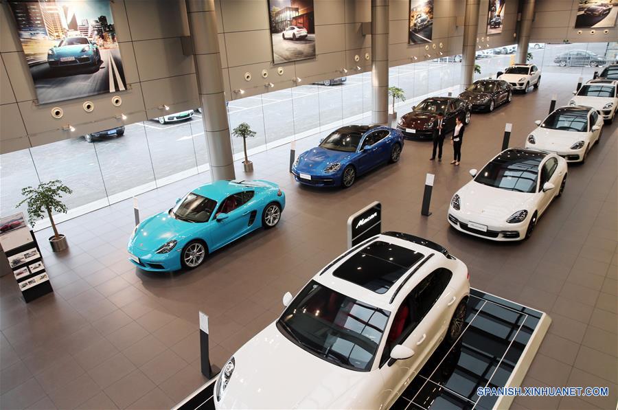 Vista de un salón de exposiciones de vehículos de importación, en Nantong, provincia de Jiangsu, en el este de China, el 22 de mayo de 2018. China reducirá los aranceles que se aplican a las importaciones de vehículos y componentes del sector automovilístico desde el 1 de julio, anunció el martes el Ministerio de Hacienda. Para las importaciones de autos, se reducirán al 15 por ciento tanto el arancel del 25 por ciento que se recauda con la entrada de 135 elementos como el del 20 por ciento que se aplica a otros cuatro elementos, lo que supone una bajada del 40 por ciento y 25 por ciento, respectivamente. Las tarifas sobre las importaciones de 79 elementos correspondientes a componentes automovilísticos se recortarán al seis por ciento, frente a los niveles actuales, que son del ocho, el 10, el 15, el 20 y el 25 por ciento para estos productos, con una reducción del 46 por ciento en promedio. (Xinhua/Xu Congjun)