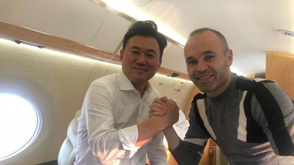 ?Rumbo a mi nuevo hogar, con mi amigo Hiroshi Mikitani?, confirmó el manchego en las redes sociales junto a un foto en un avión con Mikitani y una bandera de Japón.