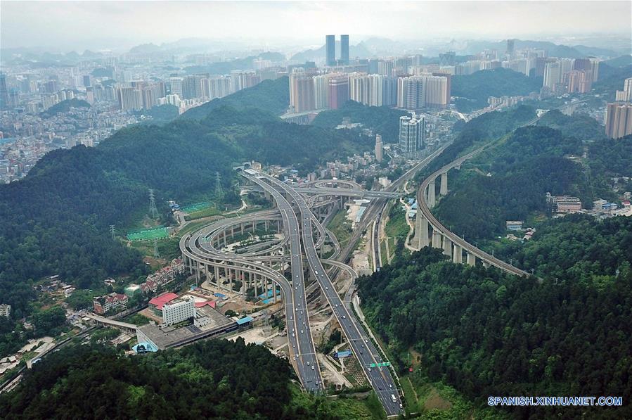 Imagen del 23 de mayo de 2018 de una vista aérea de un paso elevado, en Guiyang, ciudad capital de la provincia de Guizhou, en el suroeste de China. (Xinhua/Ou Dongqu)