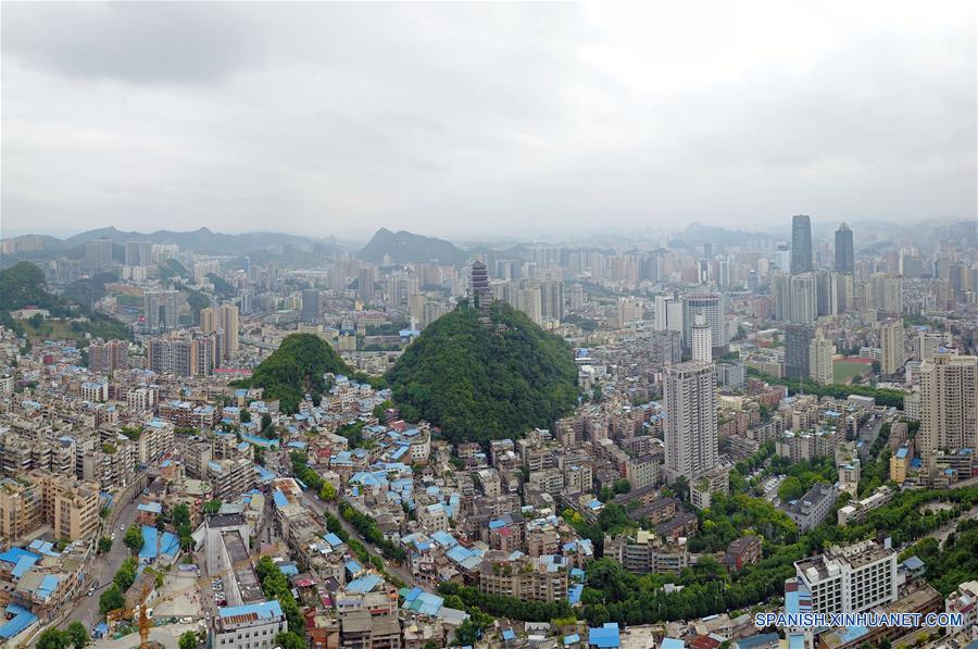 Imagen combinada del 23 de mayo de 2018 de una vista de Guiyang, ciudad capital de la provincia de Guizhou, en el suroeste de China. (Xinhua/Cai Yang)