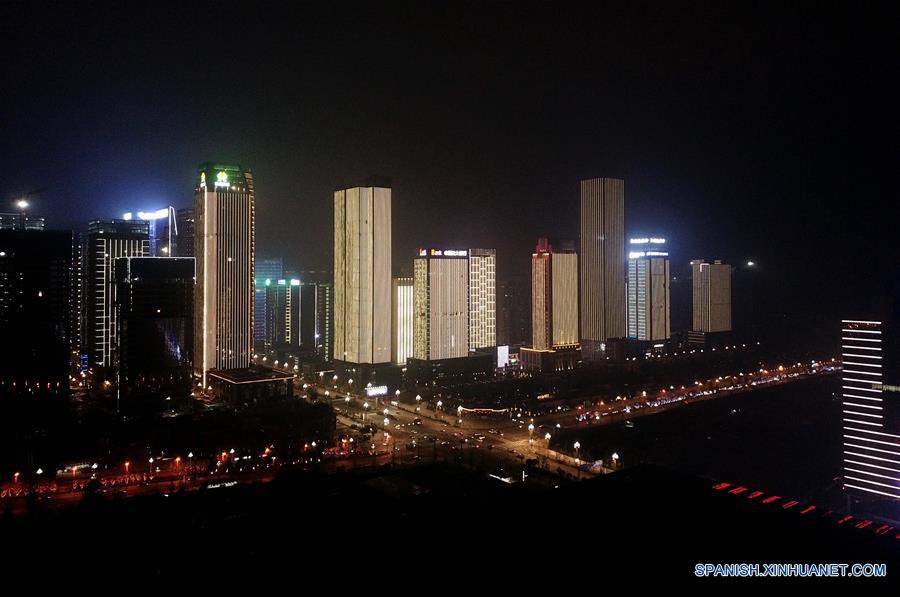 Imagen del 23 de mayo de 2018 de una vista aérea nocturna del distrito de Guanshanhu en Guiyang, ciudad capital de la provincia de Guizhou, en el suroeste de China. (Xinhua/Liu Xu)