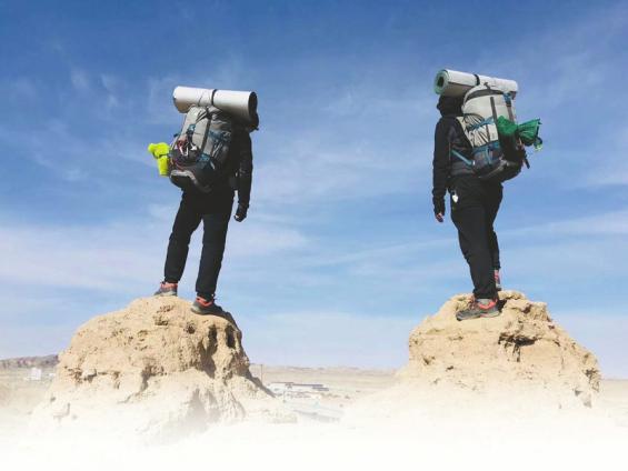 Xinjiang, 05/06/2018 (El Pueblo en Línea) - Lati Mulati y Ayados Shakhdarati, dos estudiantes universitarios de la Universidad Minzu del Sureste, en la provincia de Sichuan, suroeste de China, se encuentran en la región autónoma Uygur de Xinjiang. El 1 de enero, montaron en patinete desde la entrada de su universidad, pasando por las provincias de Sichuan, Shaanxi y Gansu antes de llegar a su destino en Hami, Xinjiang. Su viaje duró 53 días y cubrió más de 2.200 kilómetros. [Foto proporcionada a chinadaily.com.cn]