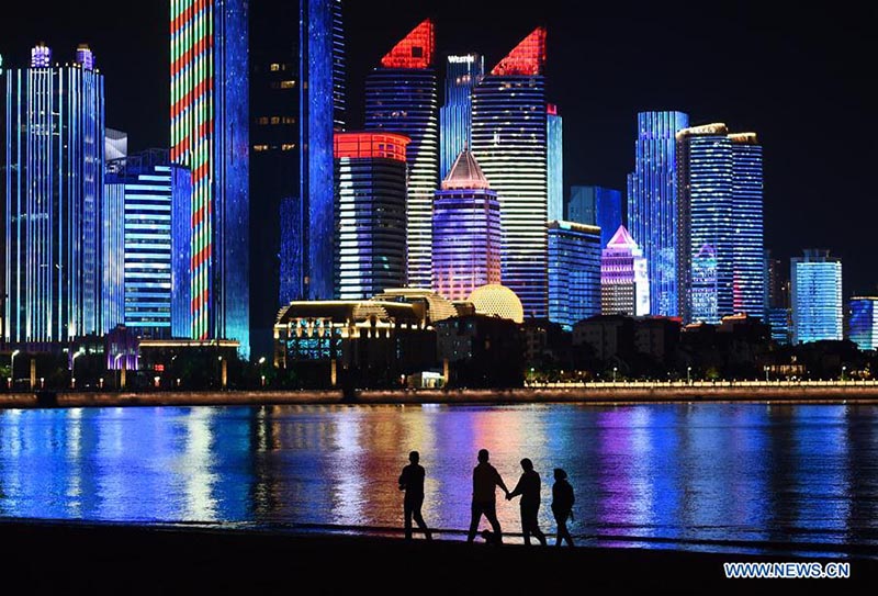 Foto tomada el 3 de mayo de 2018 muestra la vista nocturna de la bahía de Fushan en Qingdao, provincia de Shandong, este de China. La XVIII Cumbre de la Organización de Cooperación de Shanghai se celebrará el 9 y 10 de junio en Qingdao. (Xinhua / Li Ziheng)