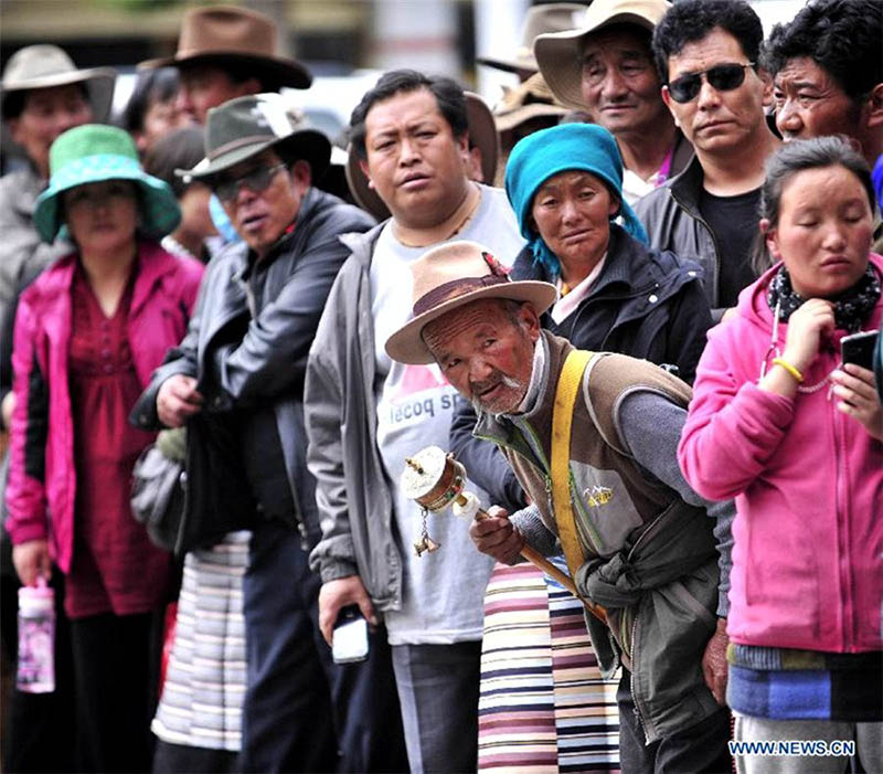 Los miembros de la familia de los examinados esperan al frente de una escuela secundaria de Lhasa, capital de la región autónoma del Tíbet, 7 de junio del 2013. [Foto: Xinhua]