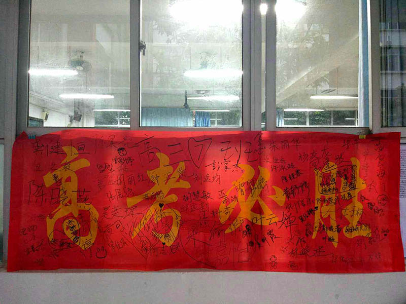 Una pancarta de Gaokao firmada por los estudiantes. [Foto: Yu Yonghua]